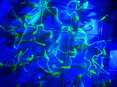 Responding to Dr Eric Hill & Willow Hall’s work at Loughborough University and their research for the Neuchip project, Charlie has begun a series of sculptural experiments exploring the structures and growth patterns of neural cultures within bioprinted matrixes. Neuronal cultures are directed to grow directly onto micro arrays and monitored and stimulated with light.
